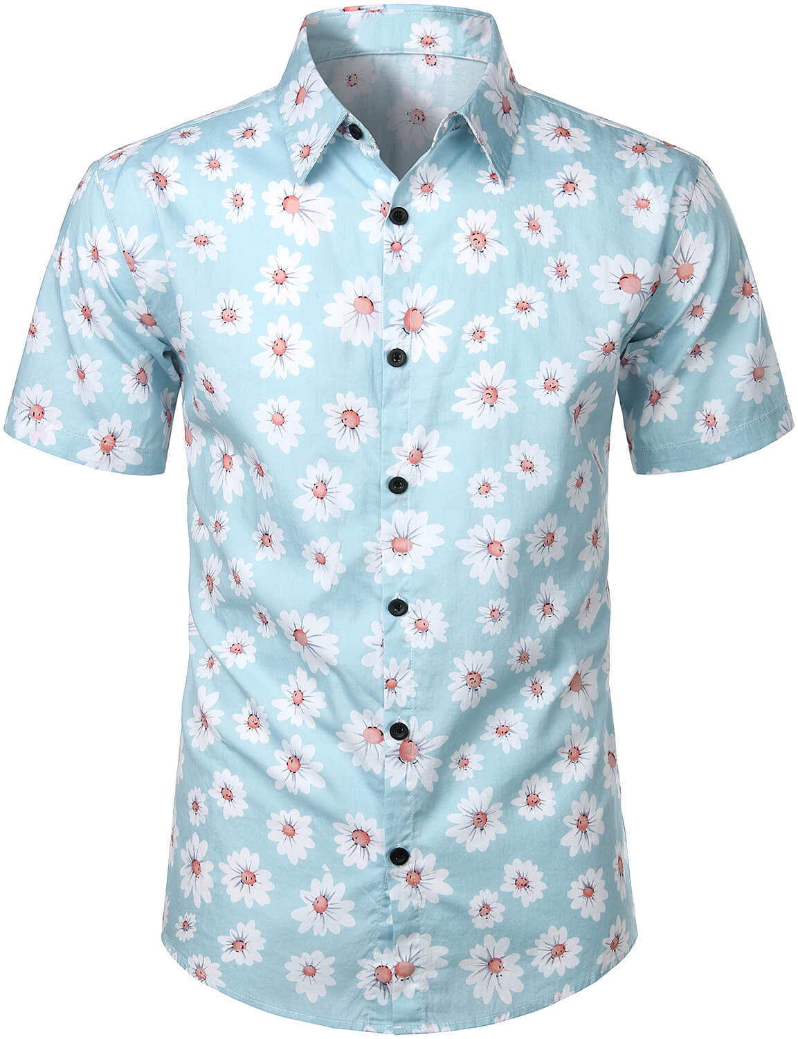 Men's Blue Daisy Floral Summer Button Up Hawaiian Short Sleeve Shirt